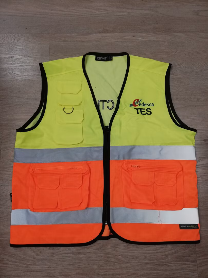 Armilla alta visibilitat, multibutxaques, tanca amb cremallera de niló, 100% polyester