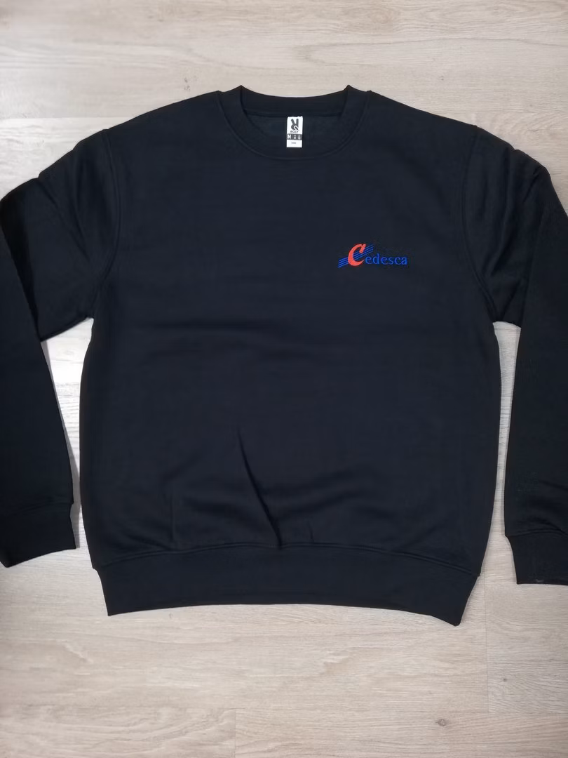 Dessuadora en disseny clàssic, amb coll, punys i cintura de punt canalé 1×1 amb elastà. Cobreix costures reforçat al coll